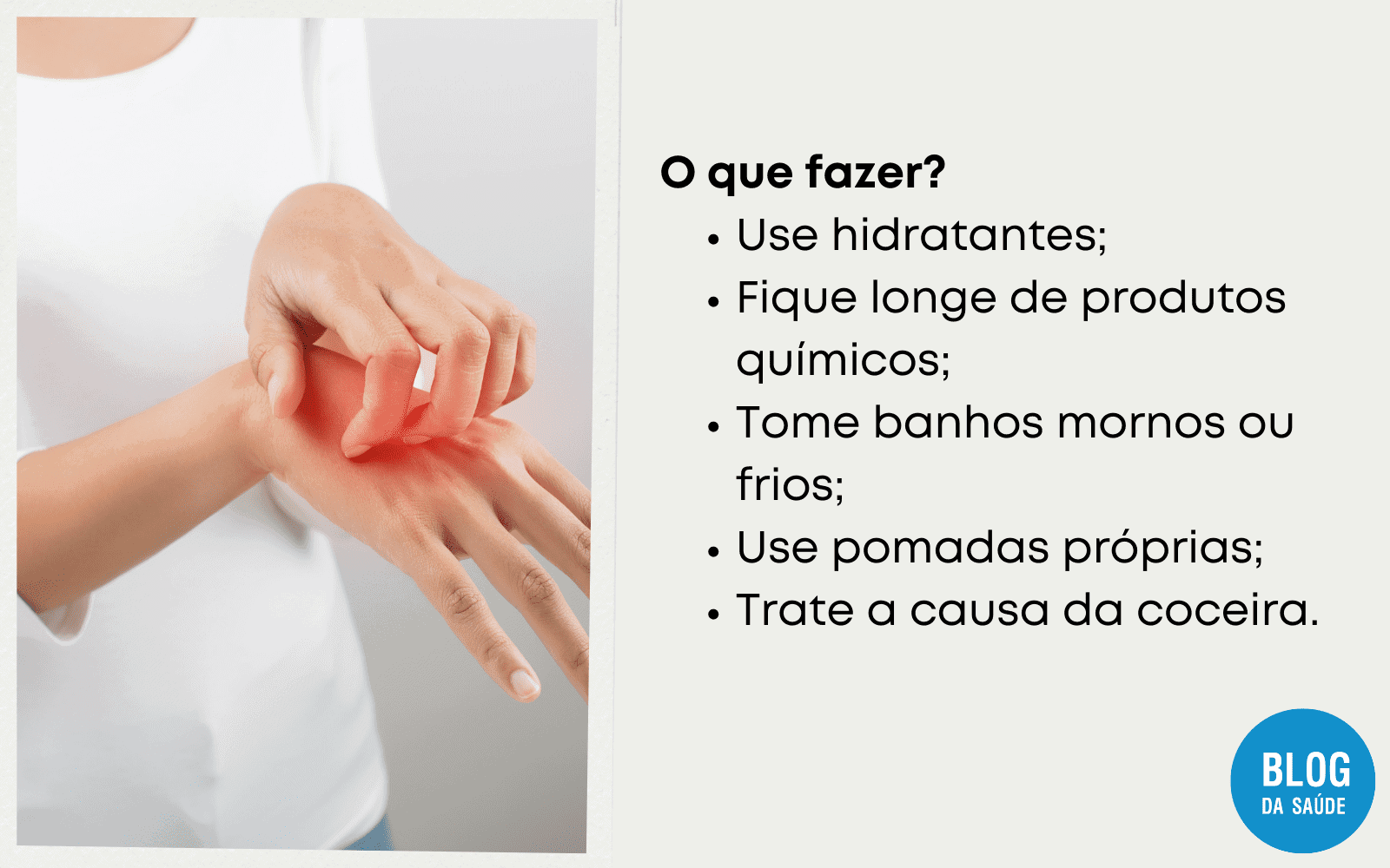 Estou com umacoceiradebaixodopédireito, que me incomoda, faz poucas horas mas encheosaco e fica ardendo quando quero coçar.Oquedeve ser ouoquepode ser feito para melhorar.